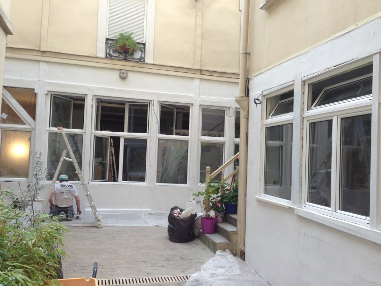 Deux lots ont été réunis par une construction sur cour. L’espace extérieur a été végétalisé et privatisé.