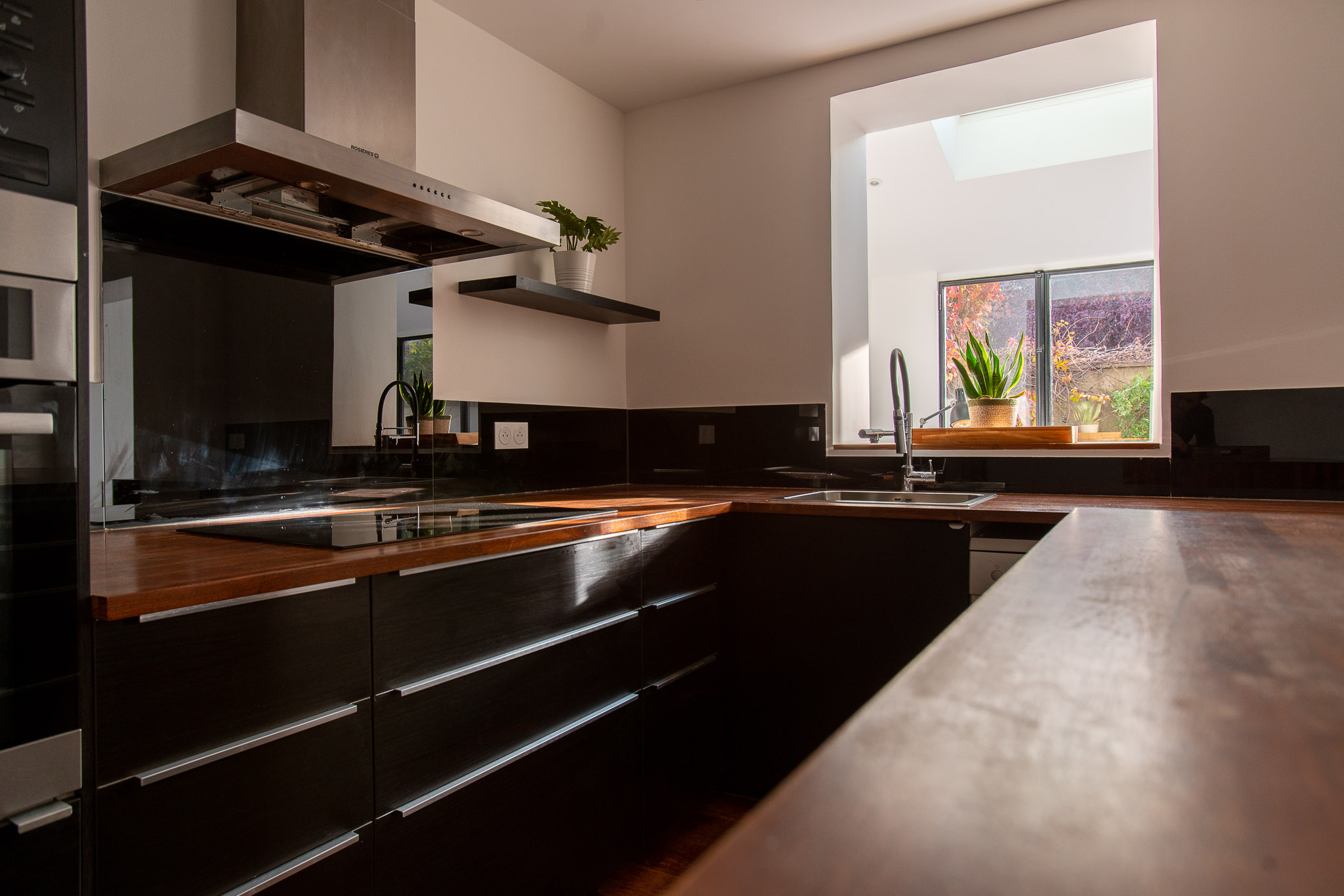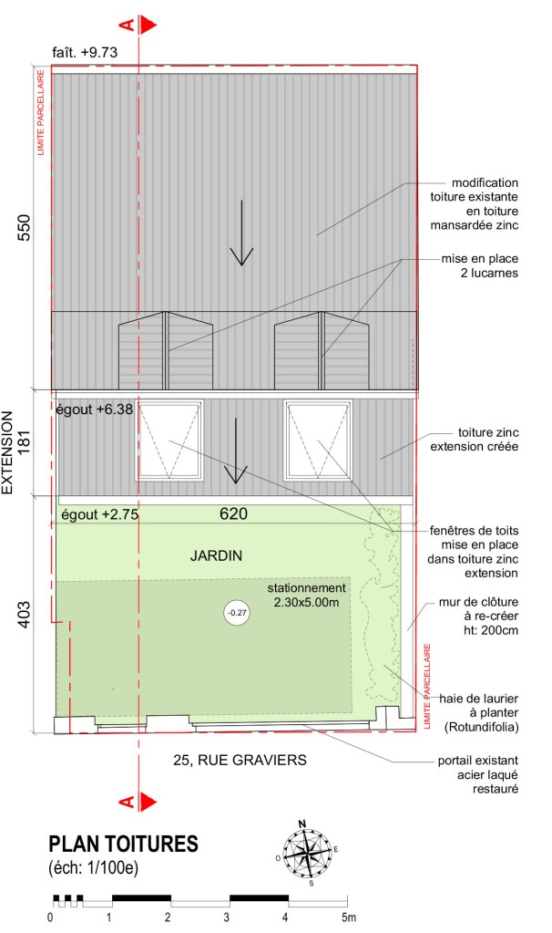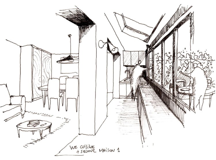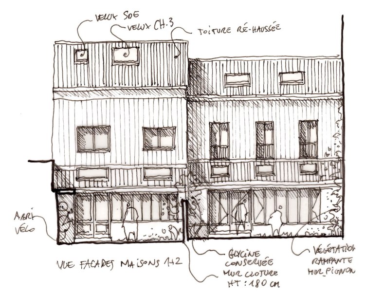 Création de deux villas indépendantes de 85 m² chacune, assorties de vérandas ouvrant sur une grande cour arborée.